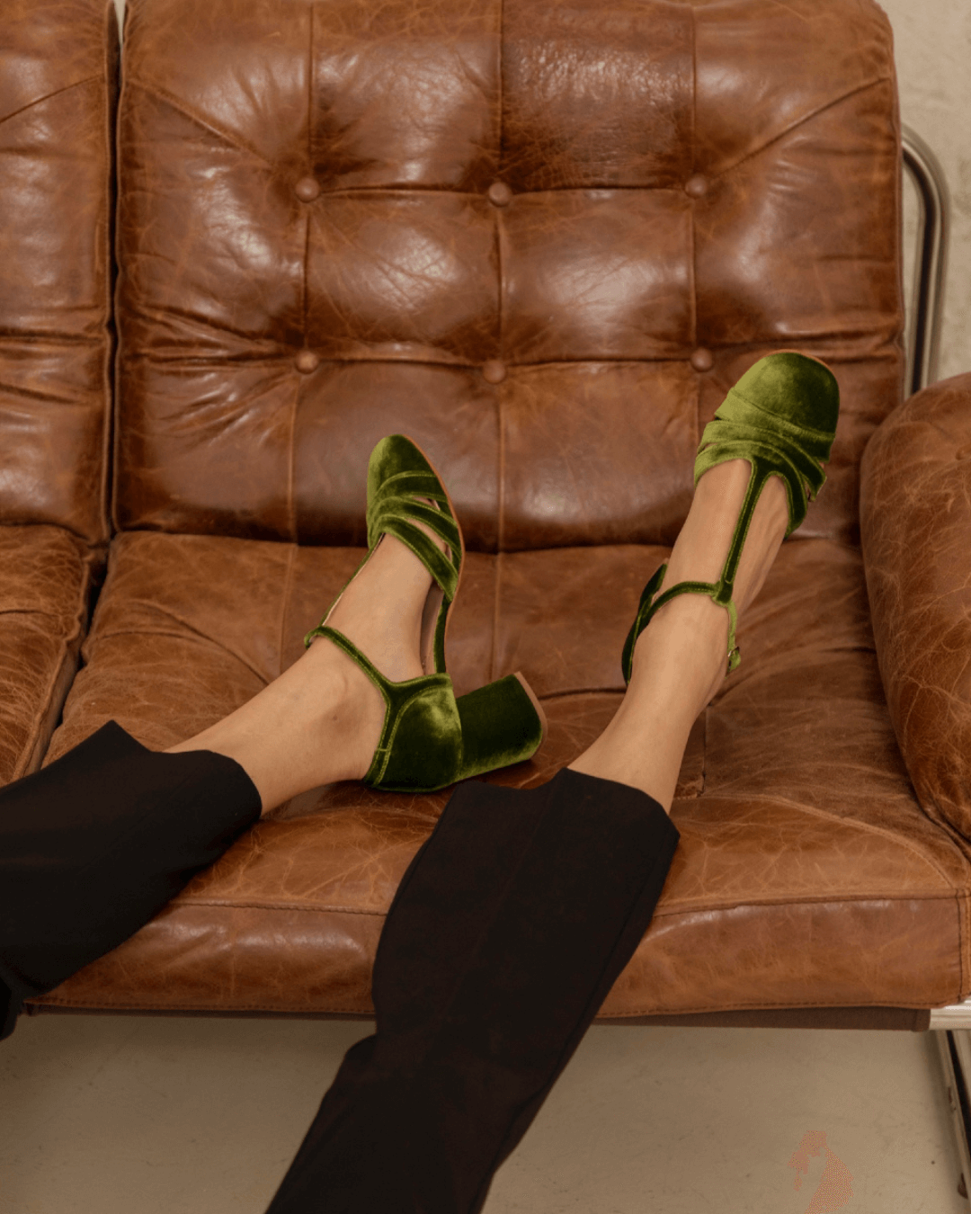 Olive Wildleder Slingback Blockabsatz mit Stegdetail