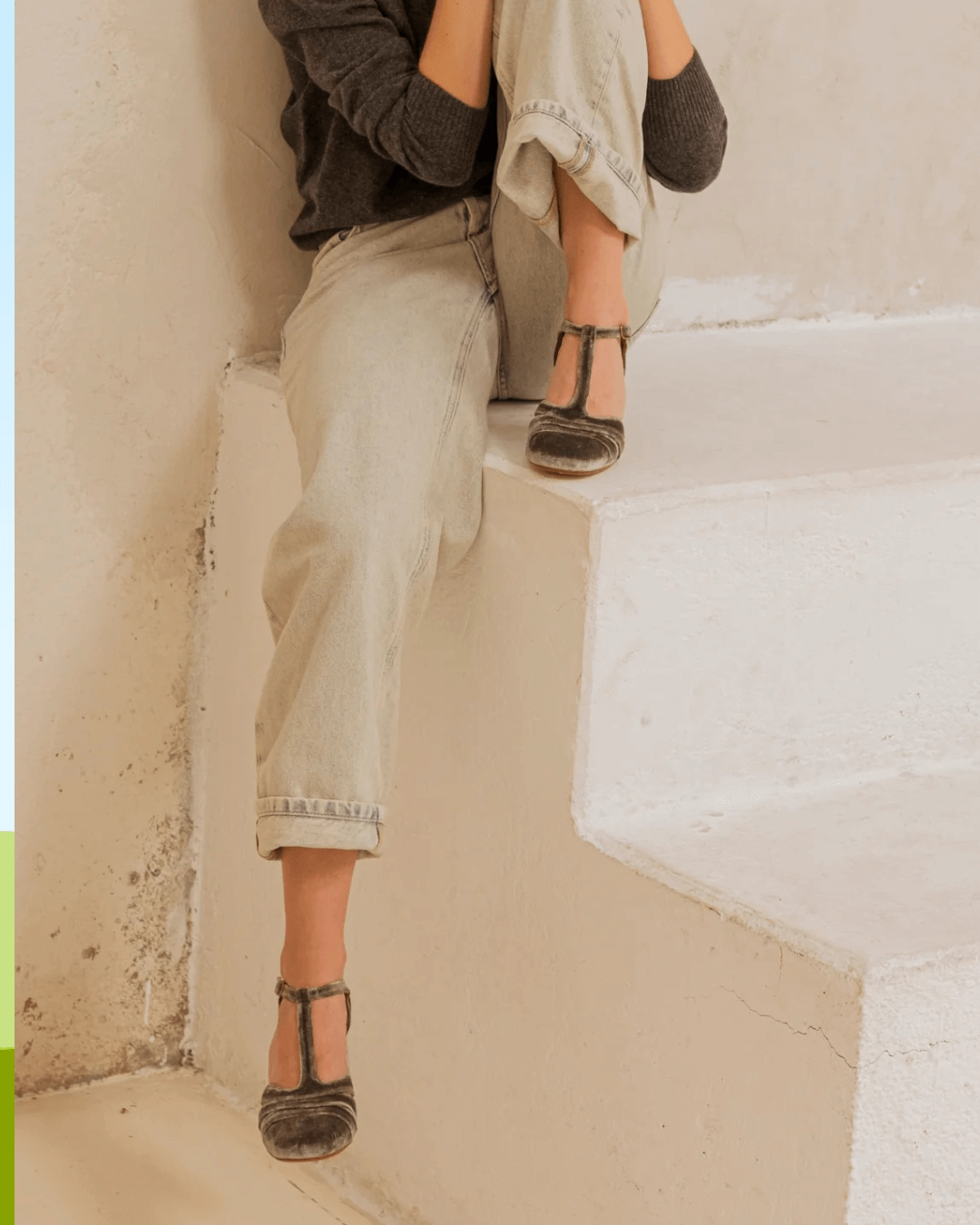 Samt Quadratische Schnalle Weiche Quadratische Zehen Ballerinas