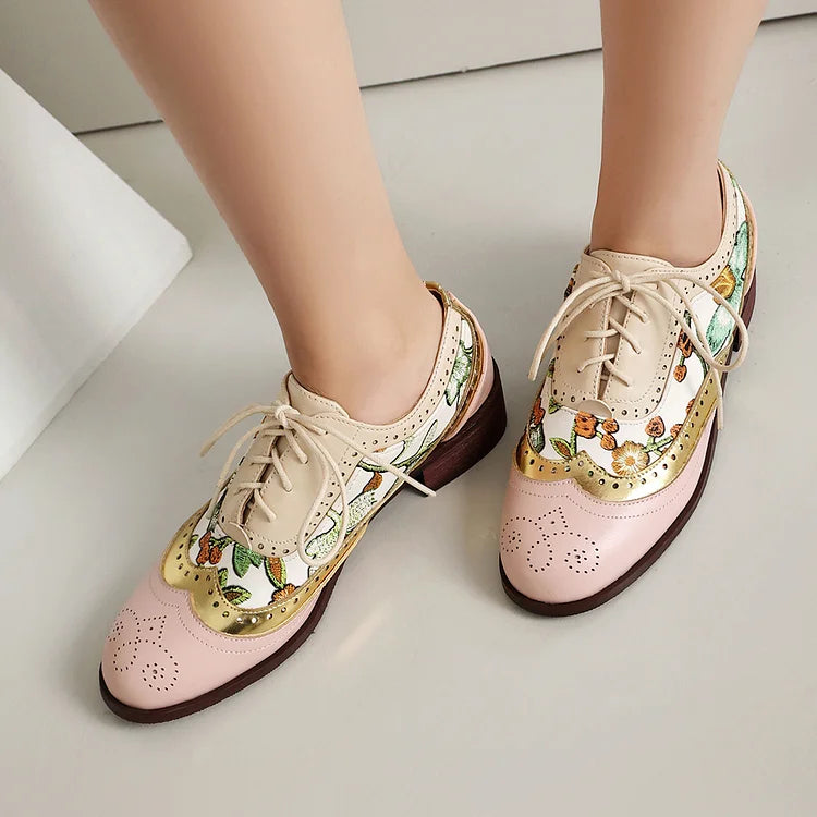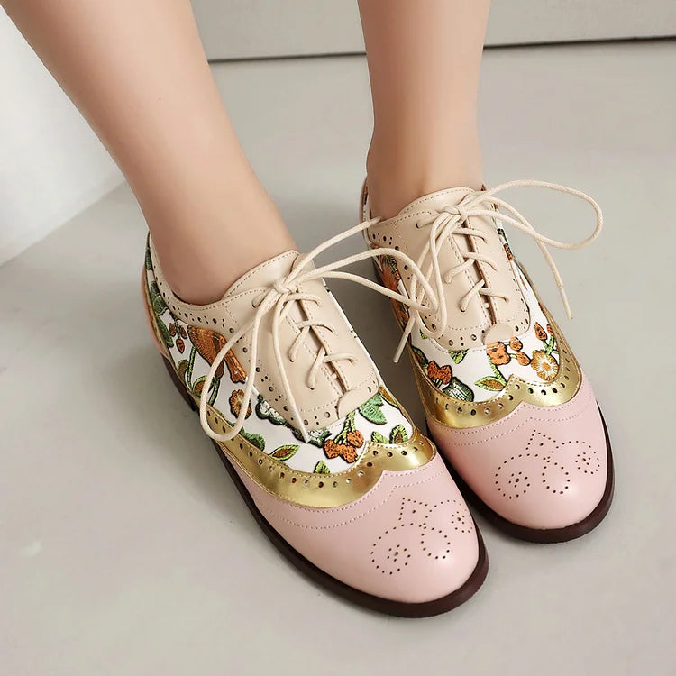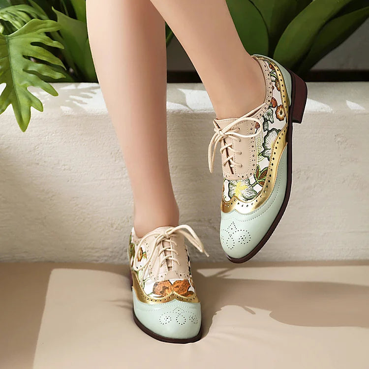 Floral Print Colorblock Patchwork Rundspitze Schnür-Brogue Oxfords