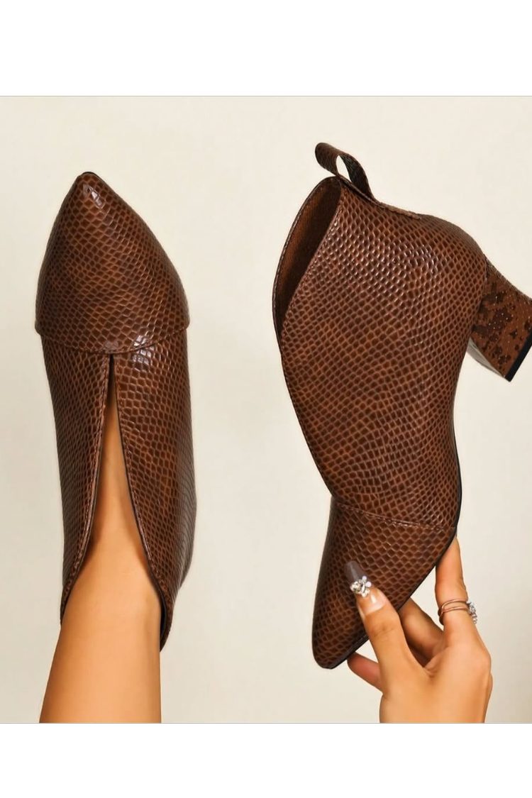 Braun Schlangenprägung Spitz zulaufende Stiefeletten [Vorbestellung]
