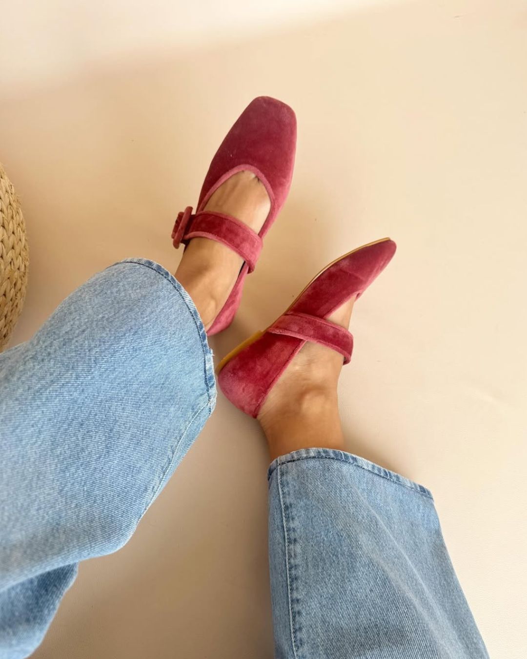 Samt Quadratische Schnalle Weiche Quadratische Zehen Ballerinas