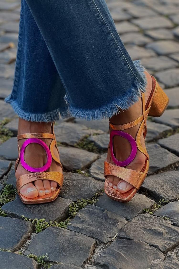Colorblock Ausschnitt Quadratische Spitze Orange Klobige Absätze [Vorbestellung]