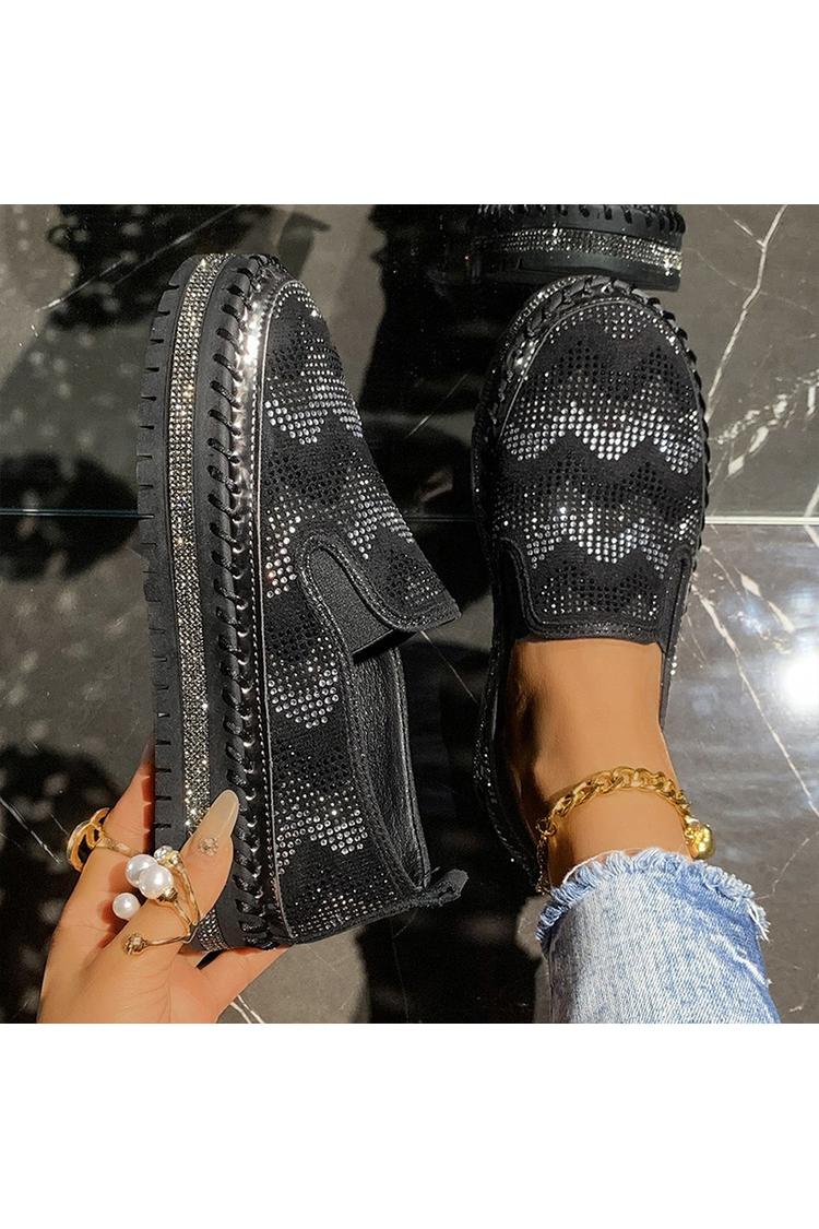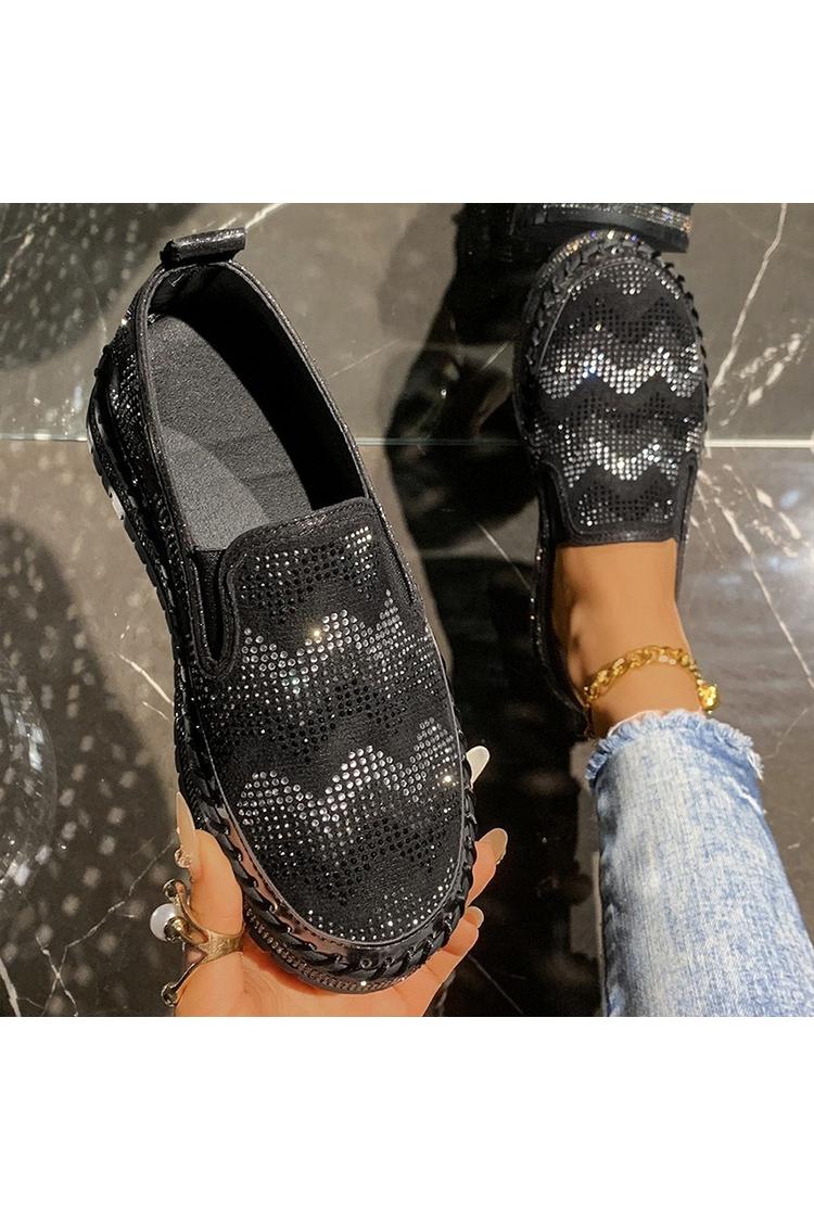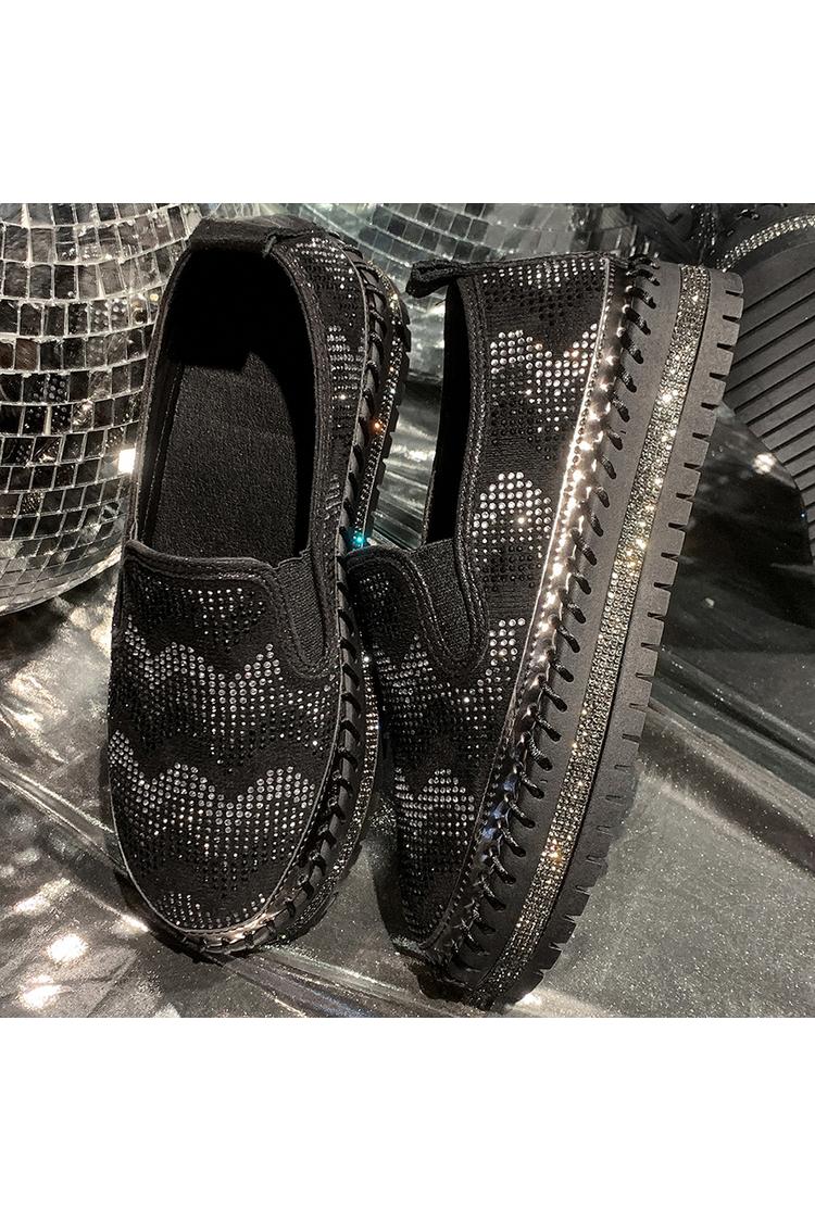 Colorblock gewellte Strassverzierung runde Zehe lässige Plateau Slipper