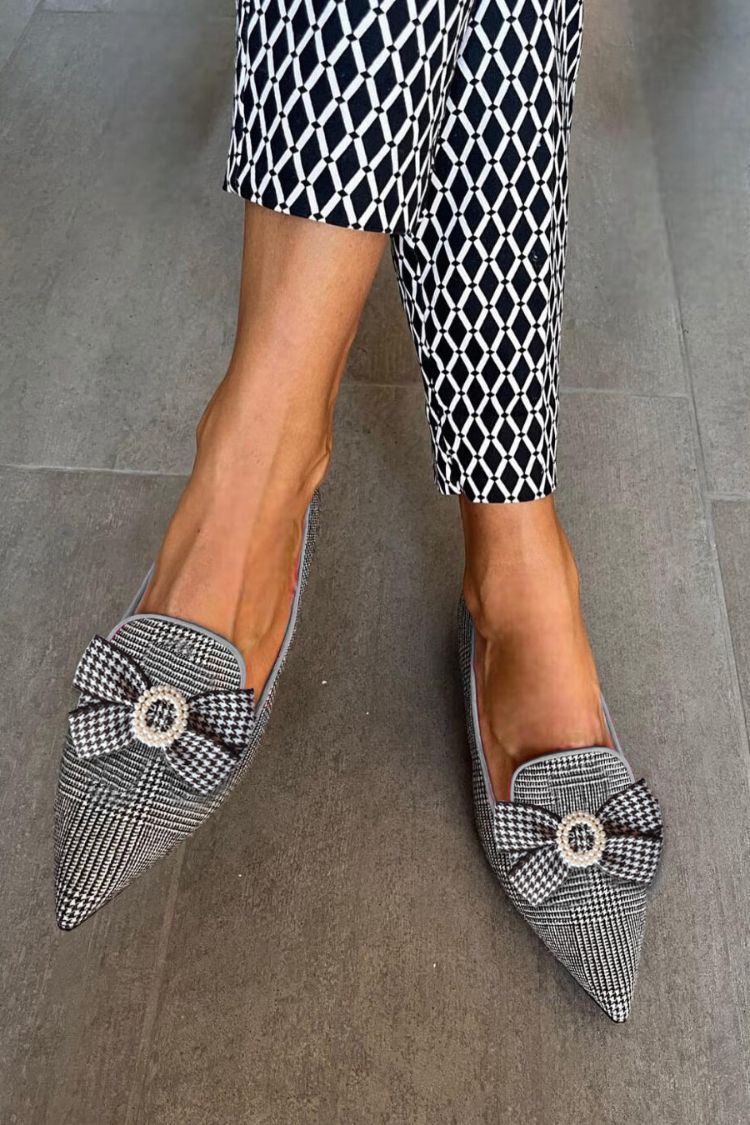Colorblock Kunstleder Perlen Schleife Spitz zulaufende Vielseitige Ballerinas [Vorbestellung]