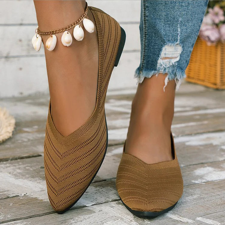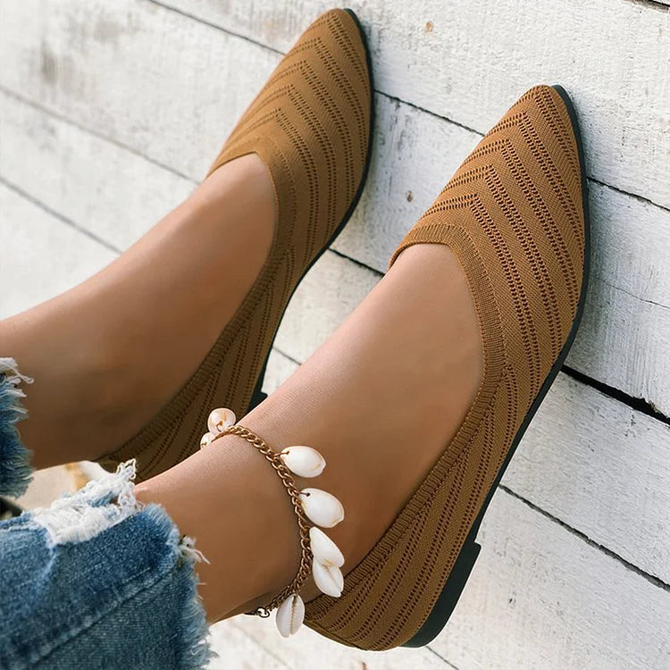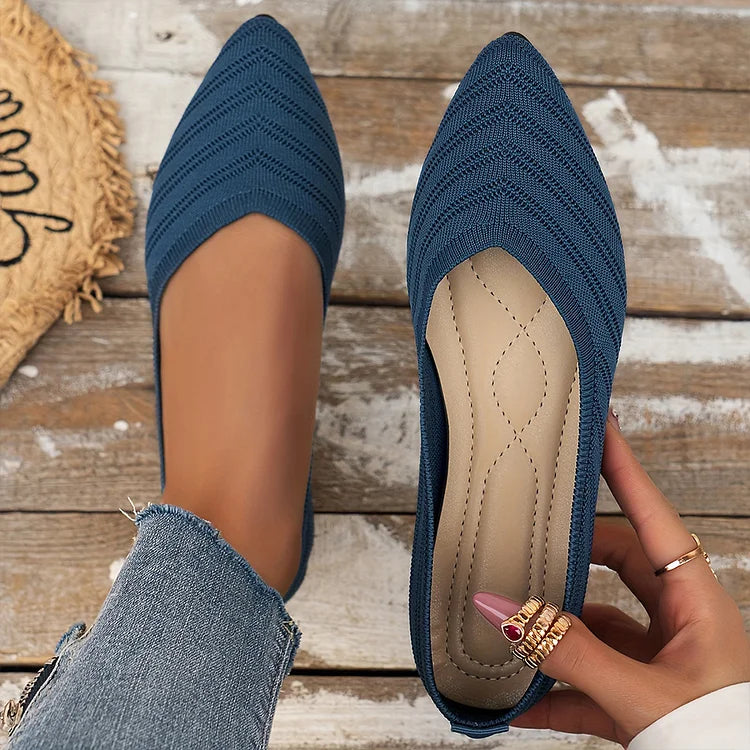 Einfarbige Strick Atmungsaktive Spitzzehen Slipper