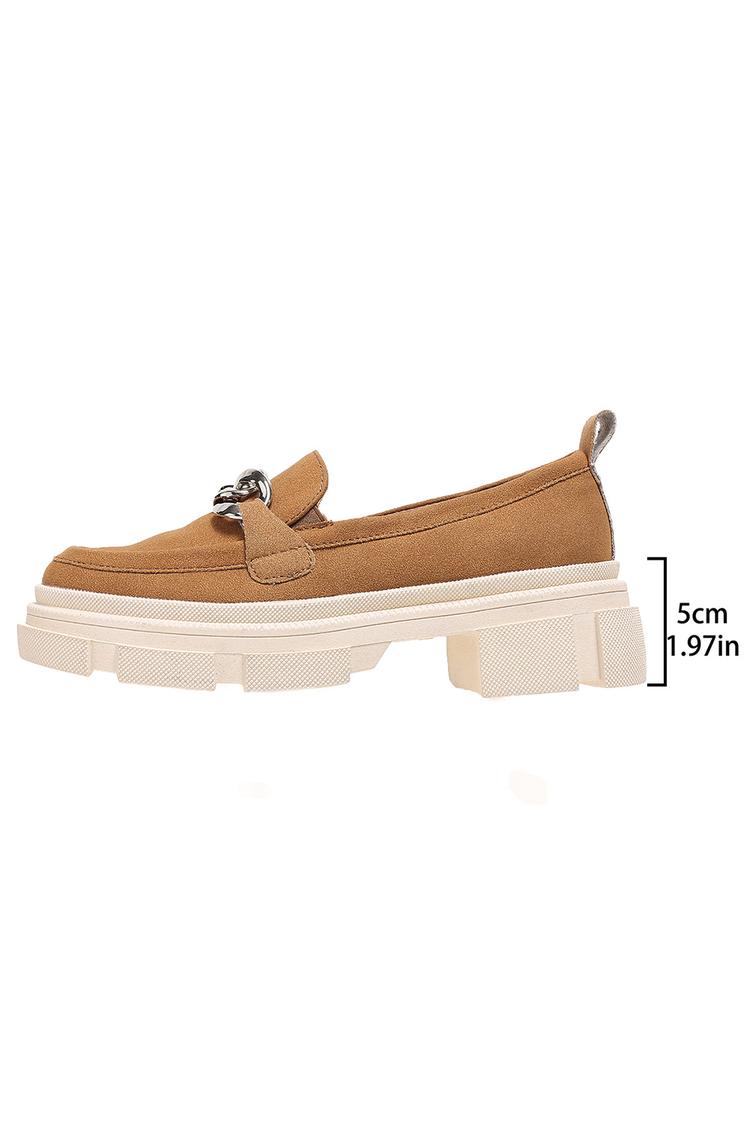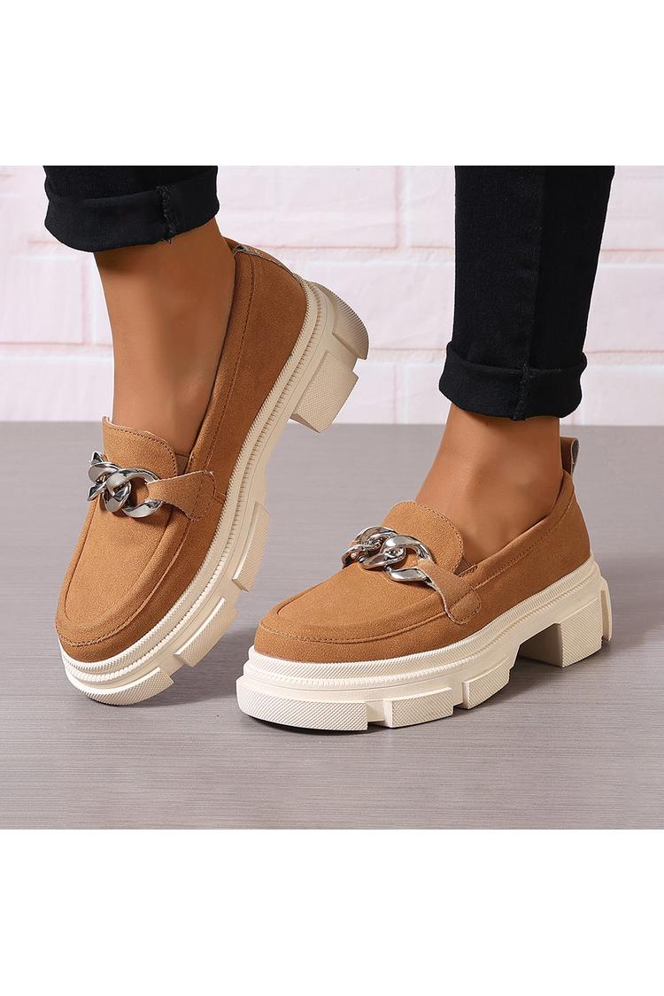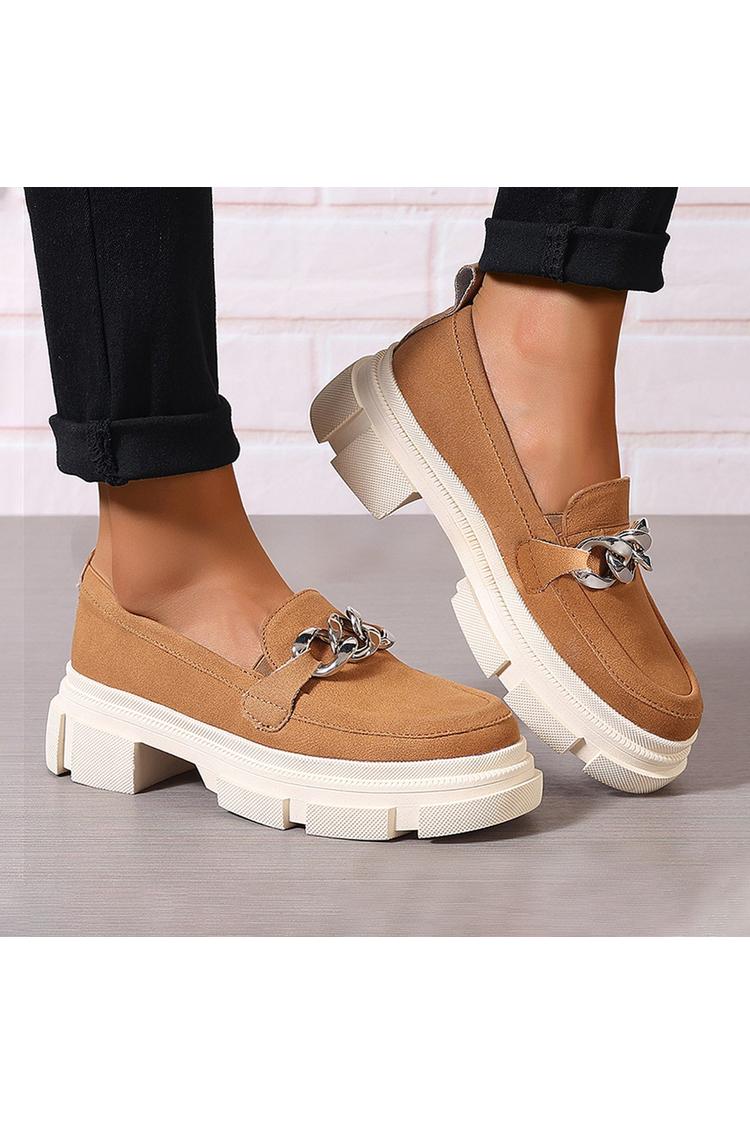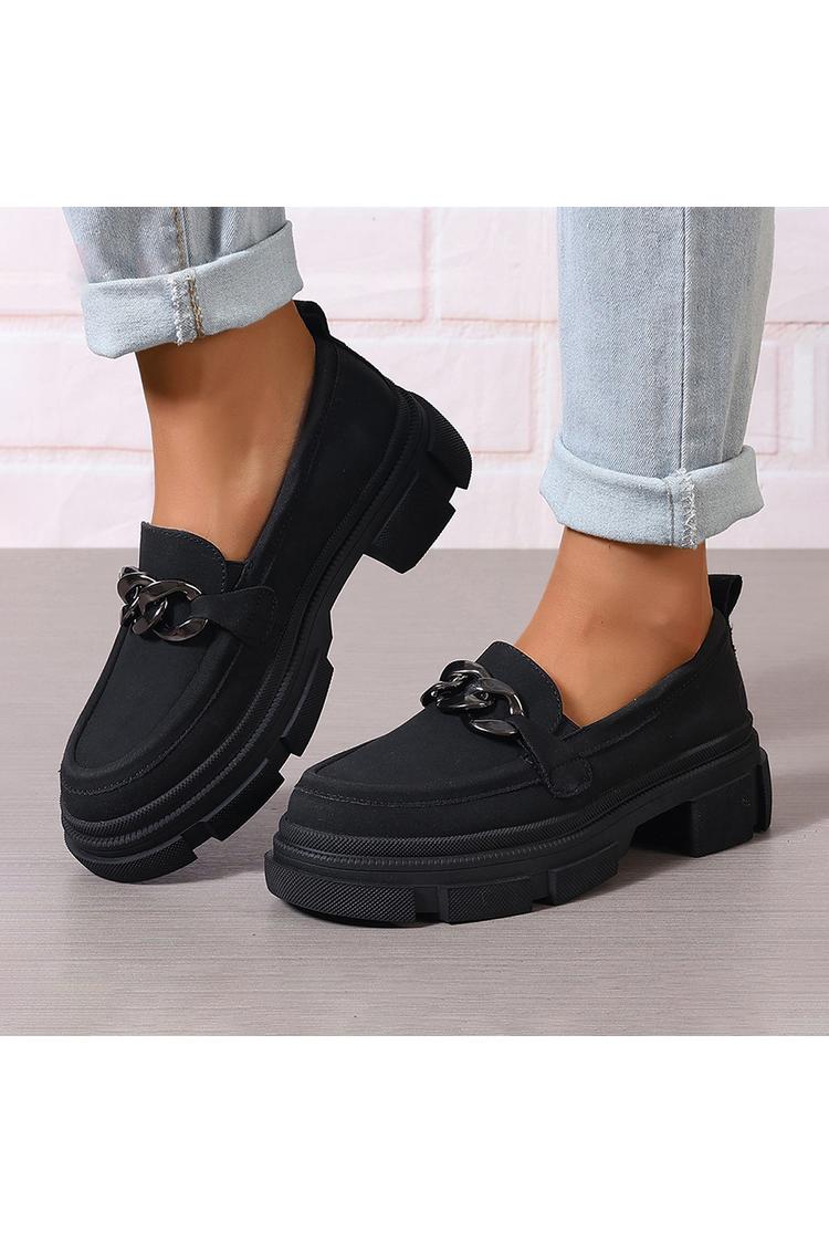 Einfarbige Metallkette Dekor Rundzehen Klobiger Absatz Loafers