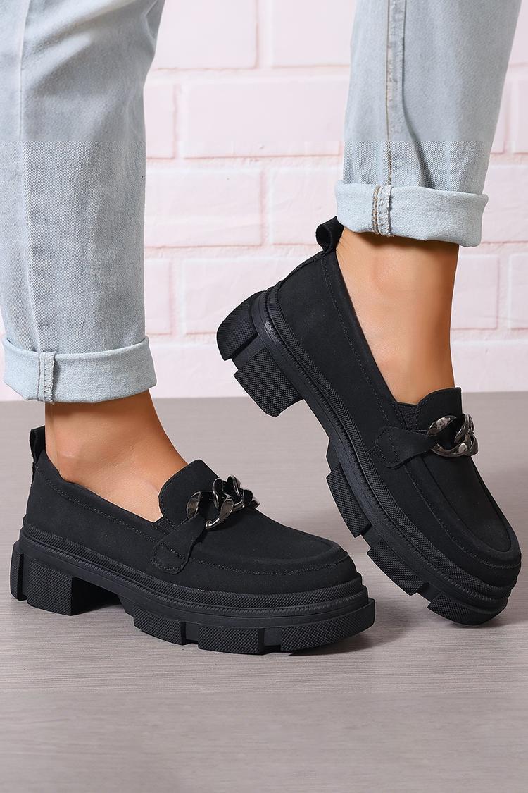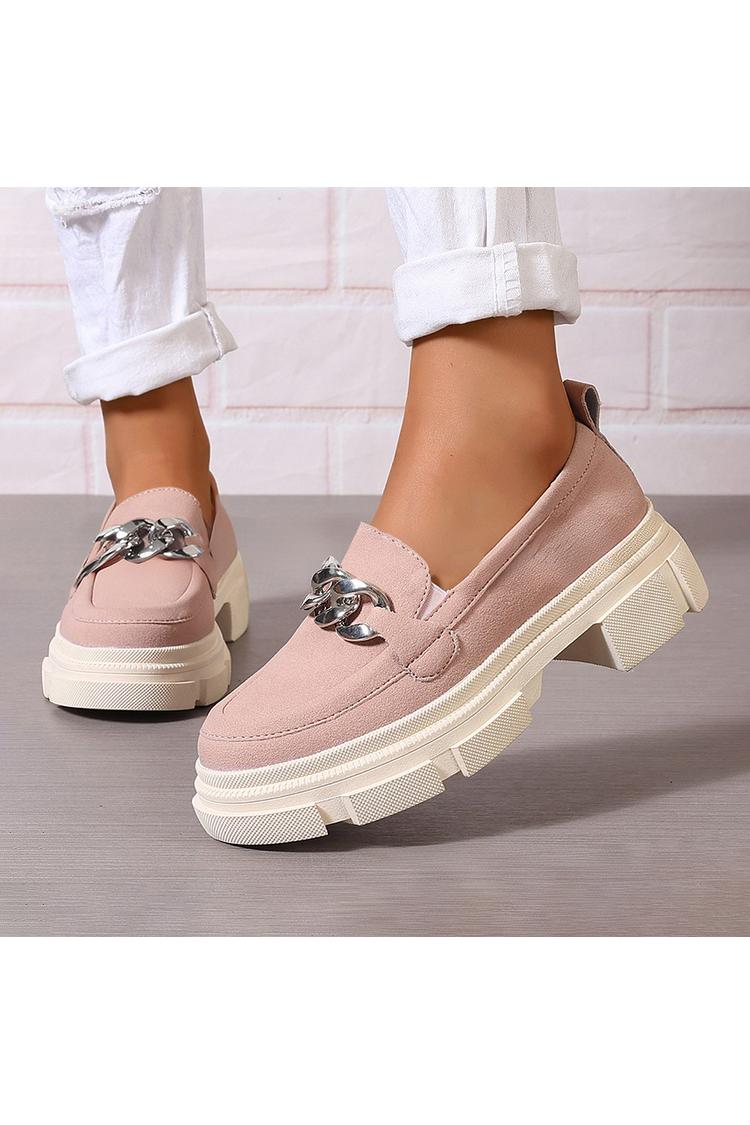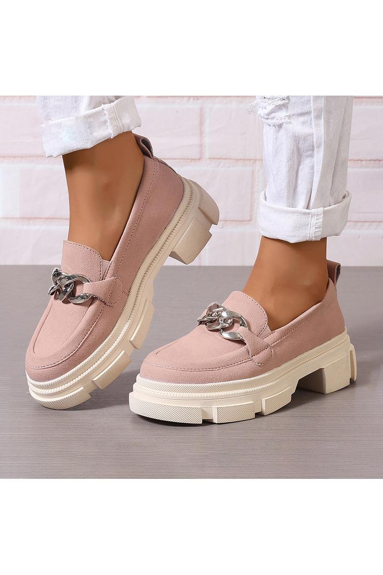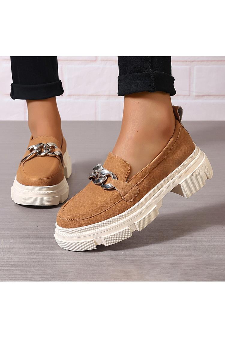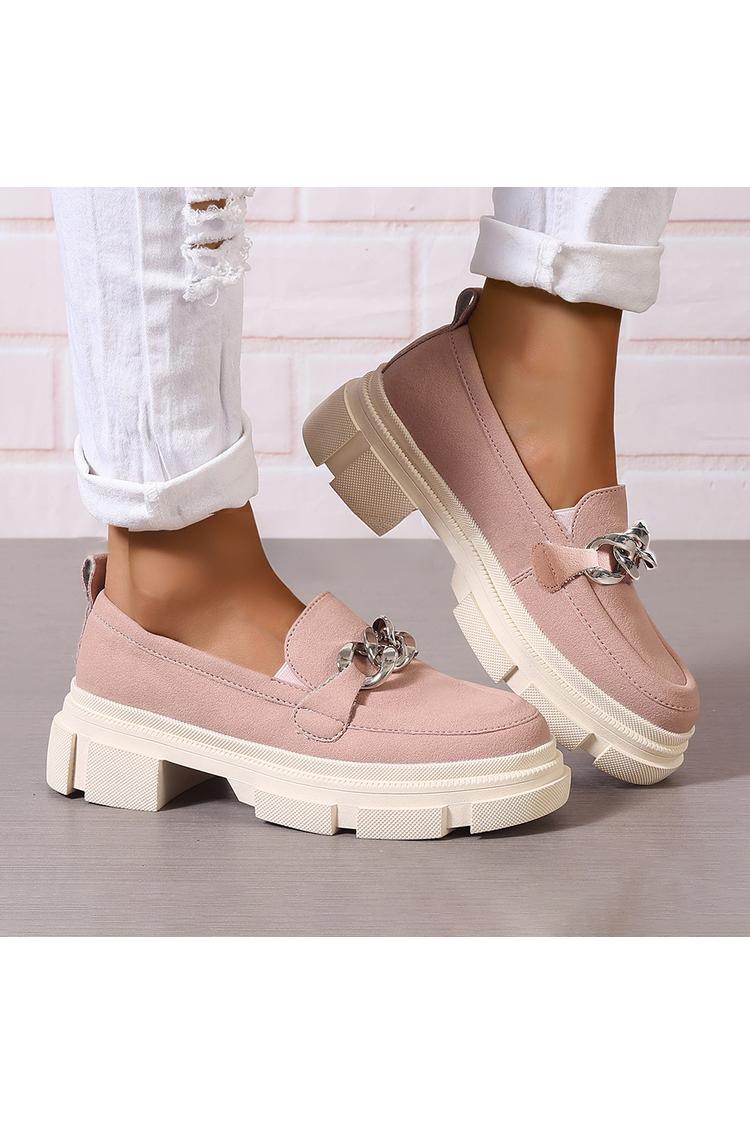 Einfarbige Metallkette Dekor Rundzehen Klobiger Absatz Loafers