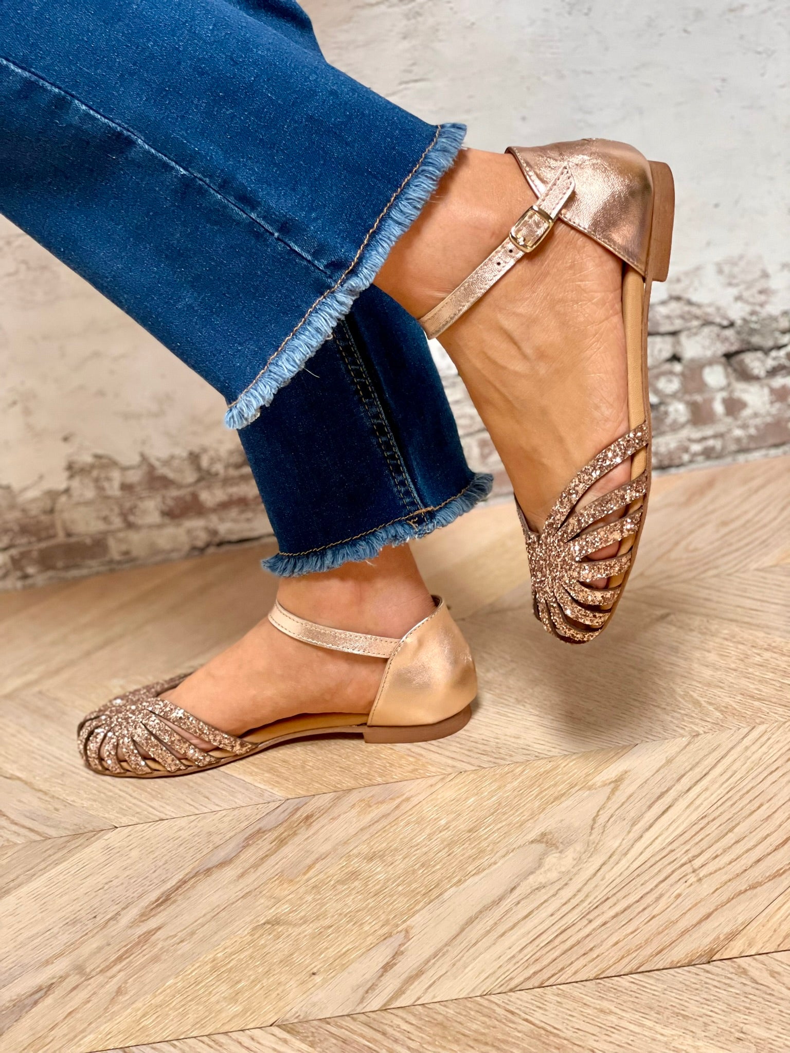 Glitzernde Ausgeschnittene Runde Zehen Champagner Sandalen [Vorbestellung]