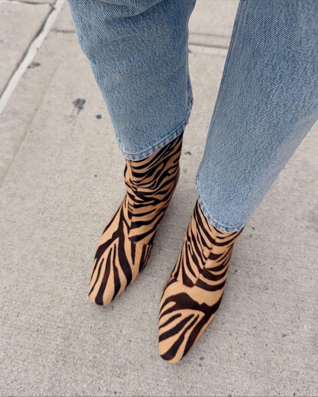 Ginger Zebra-Muster Stiefel mit klobigem Absatz bis zum Knie [Vorbestellung]