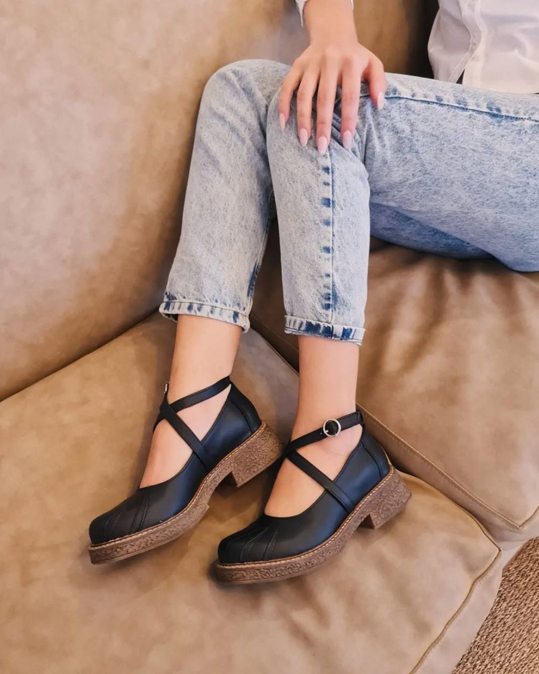 Mary Jane mit Kreuzriemen und klobigem Absatz, niedrige Absätze [Vorbestellung]