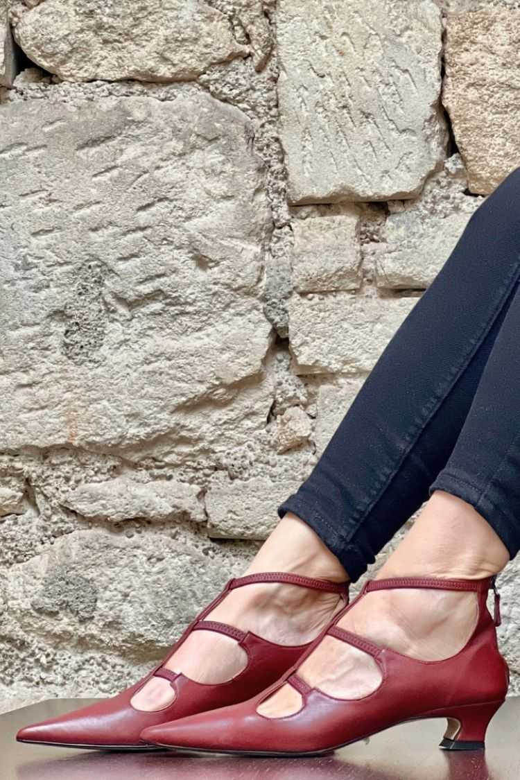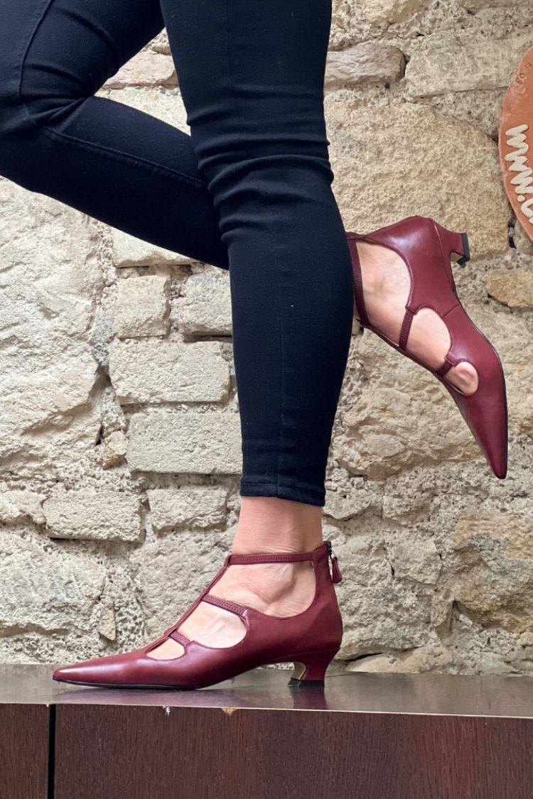 Kunstleder Cutout Riemchen Burgunderrote Absätze [Vorbestellung]