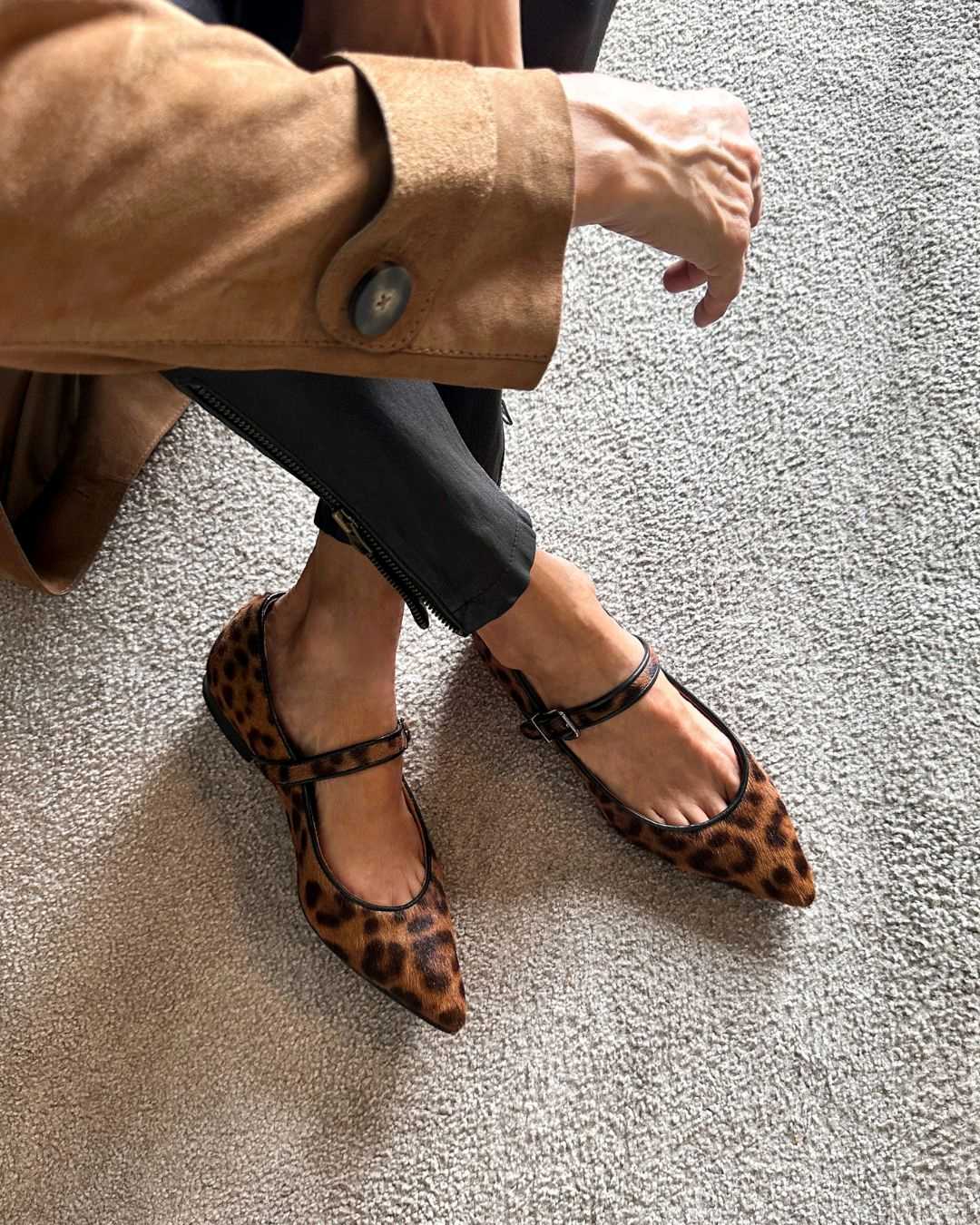 Ballerinas mit Leopardenmuster, Knöchelriemen, spitz zulaufender Zehenpartie und Einzelriemen [Vorbestellung]