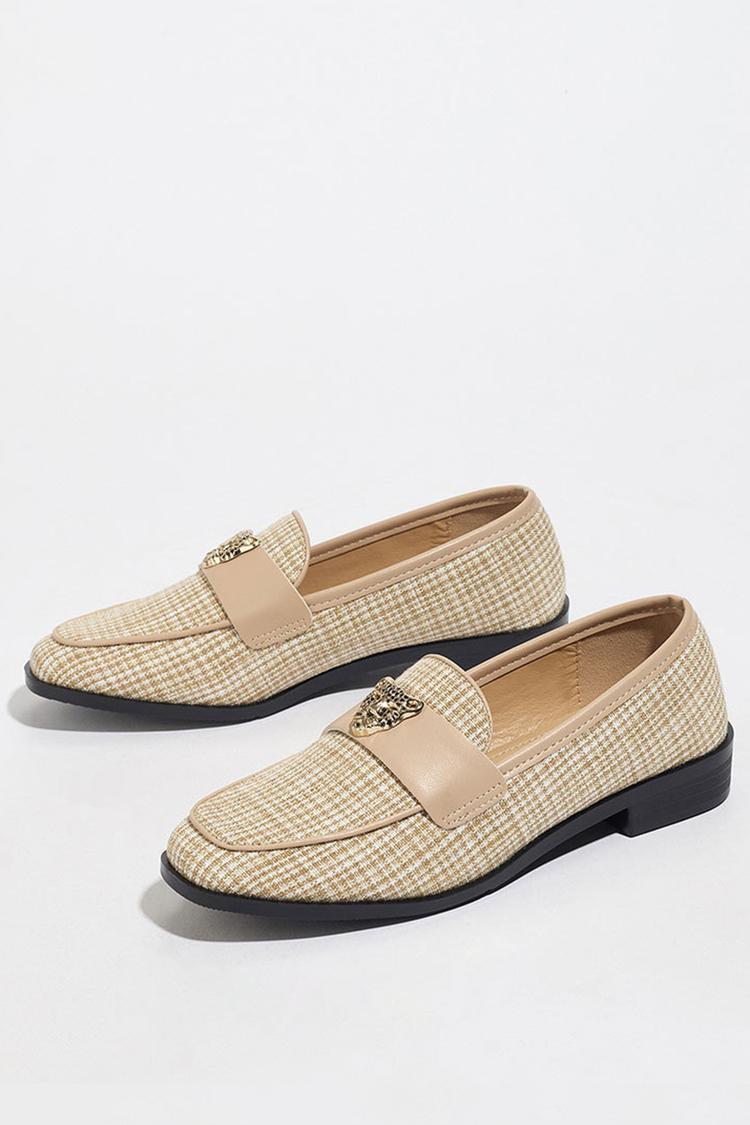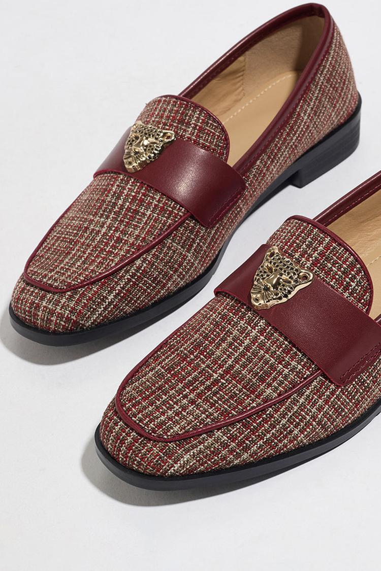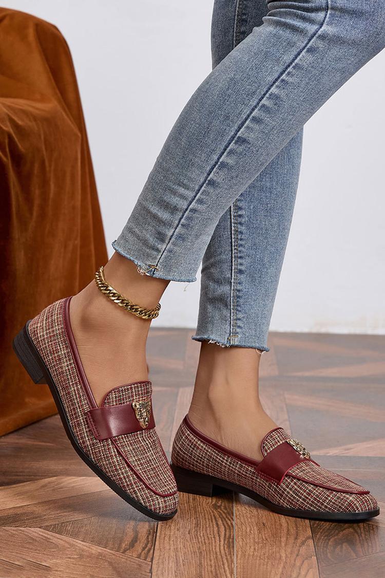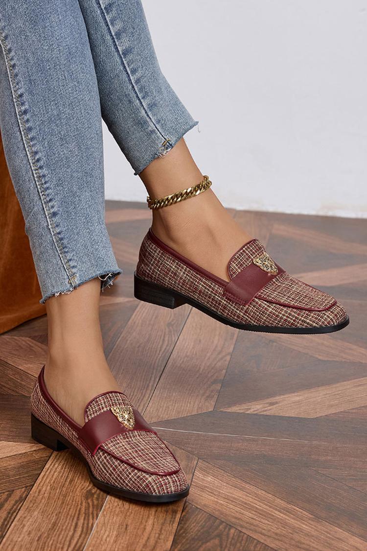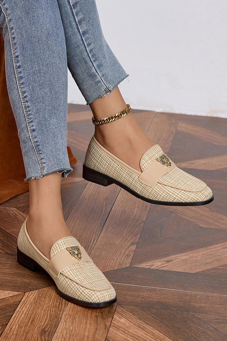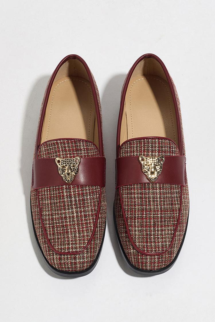 Metall Leopard Kopf Dekor Patchwork Quadratische Zehe Freizeit Slipper