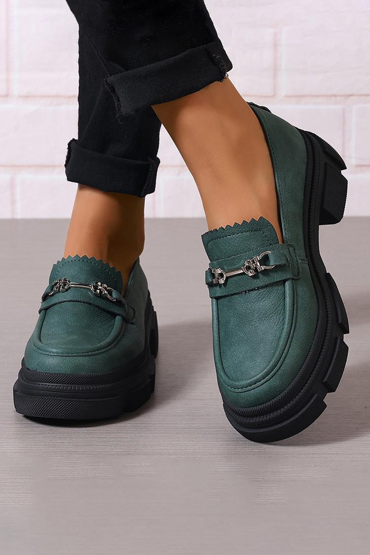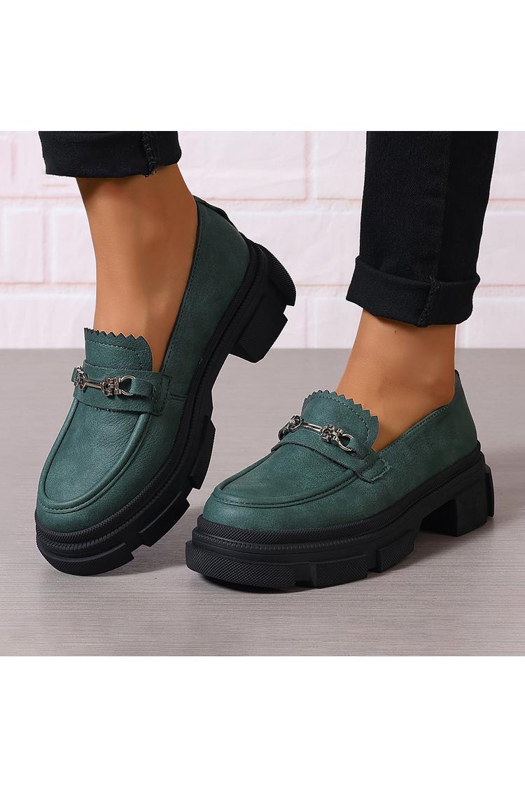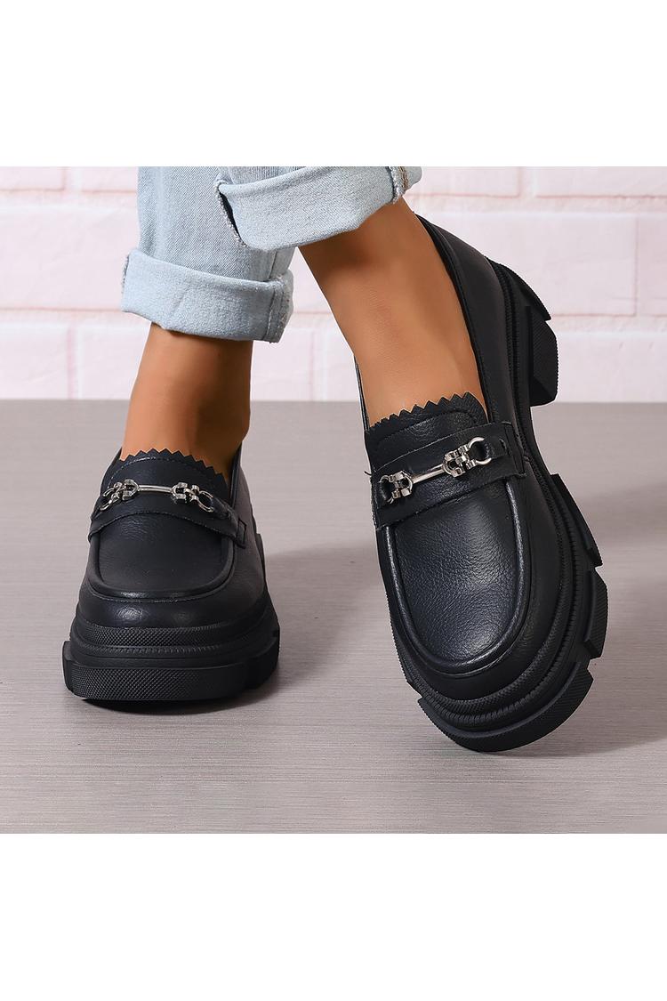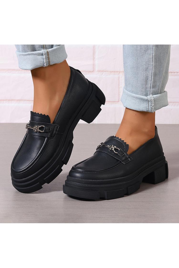 Metall Schnalle Dekor Einfarbig Runde Spitze Niedriger Blockabsatz Loafer