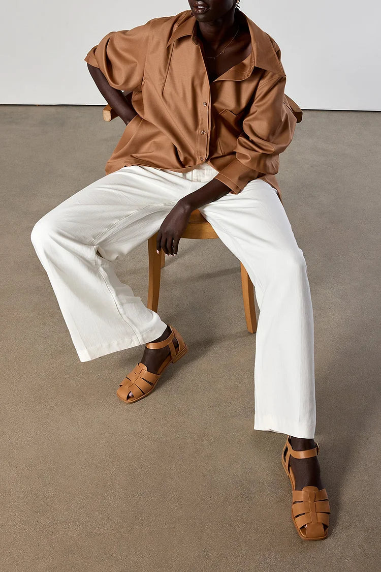 Sandalen mit quadratischer Spitze, gewebt, ausgeschnitten, hellbraun