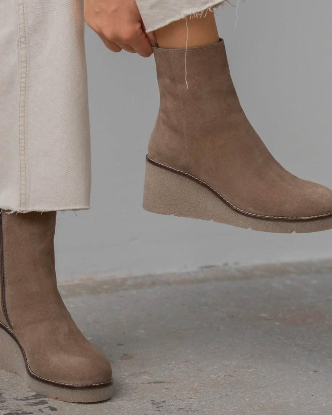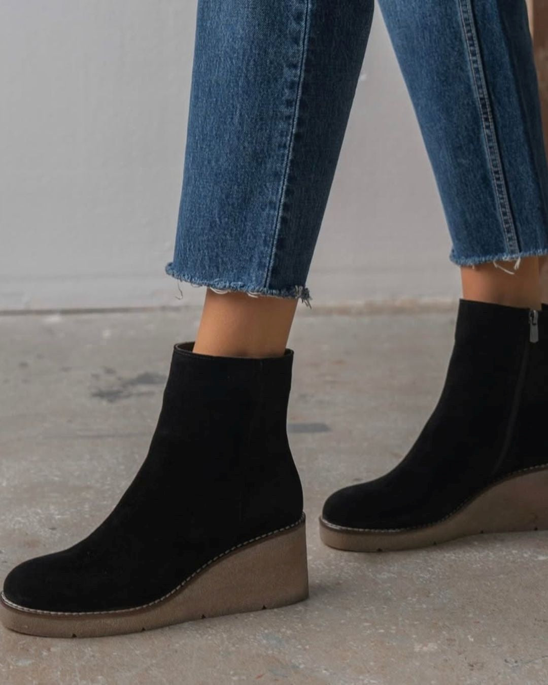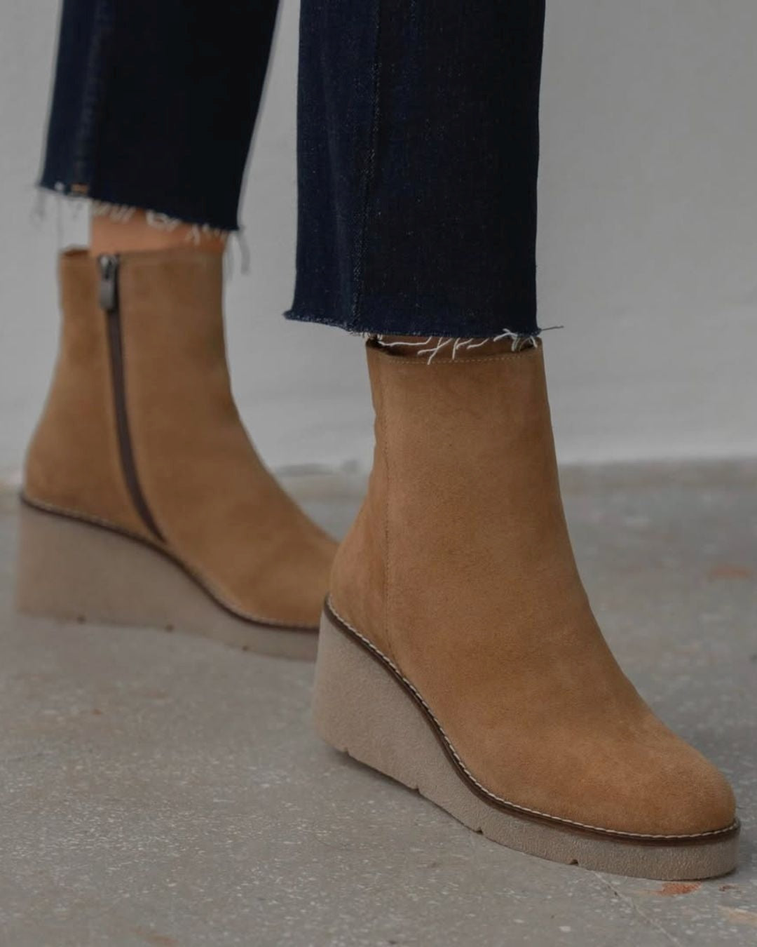 Vintage Keilabsatz Wildleder Seitenreißverschluss Plateau Einfarbige Knöchelstiefel [Vorbestellung]