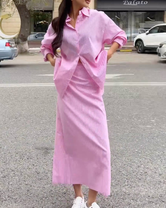 Elegant Solid Shoulder Top & Skirt Two-Piece Set