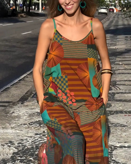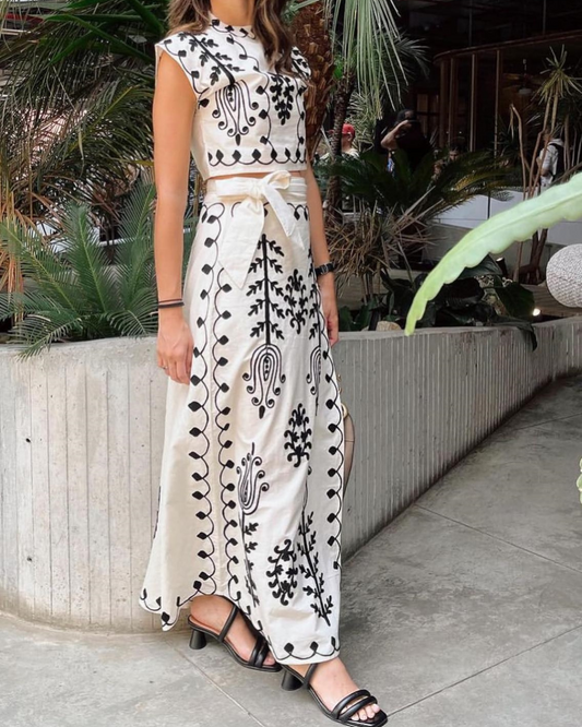 Elegant Tank Top & Printed Skirt Two-Piece Set