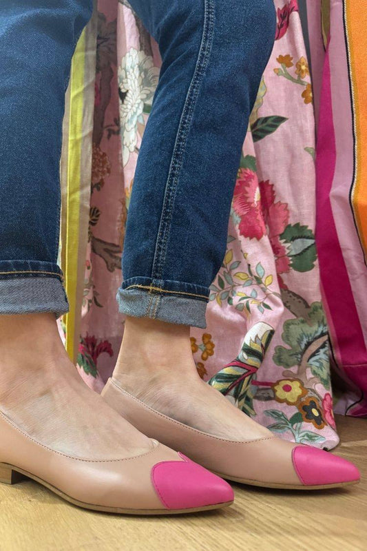 Leather Colorblock Heart Patch Pointed Toe Ballet Flats [Pre Order]