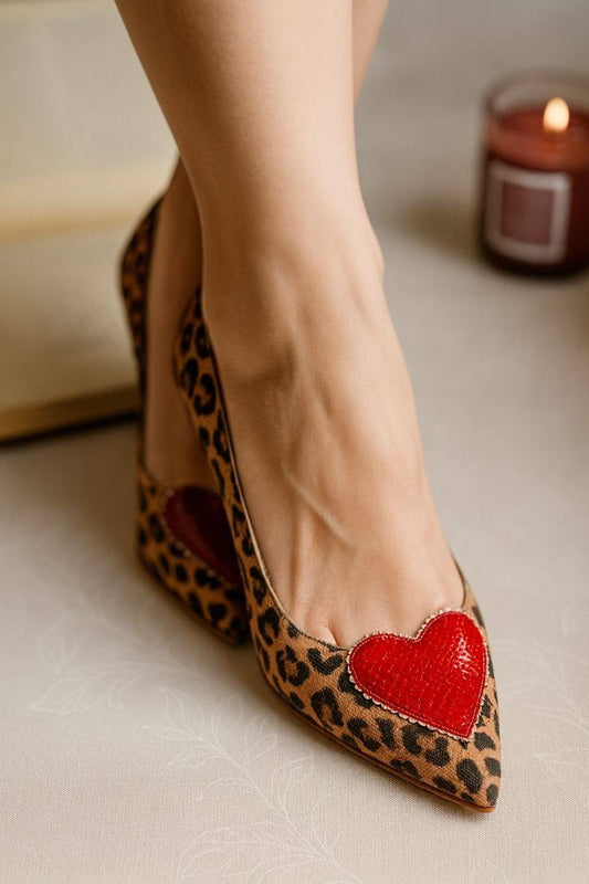Leopard Print Heart AppliquƩ Pointed Toe Stiletto Pumps [Pre Order]