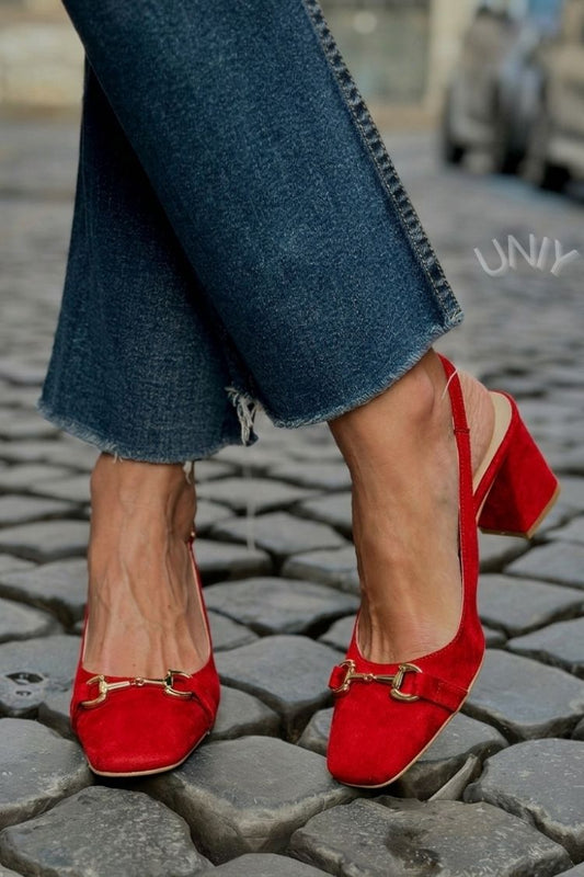 Suede Bow Strap Pointed Toe Mid Heel Dress Pumps