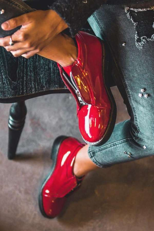 Patent Leather Front Zip Round Toe Flats [Pre Order]