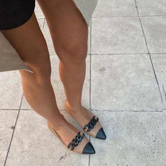 Colorblock Pointed Toe Metal Chain Decor Brown Flats [Pre Order]