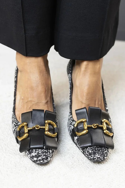 Metal Buckle Decor Pointed Toe Black Stiletto Heels [Pre Order]