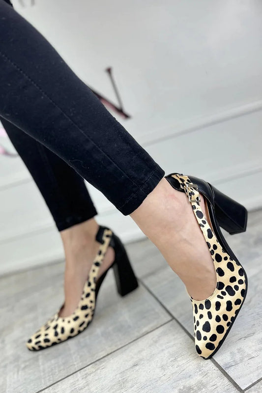 Leopard Print Cutout Pointed Toe Beige Chunky Heels [Pre Order]