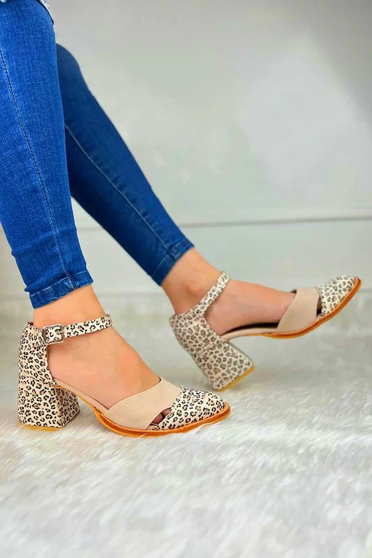 Splendid Leopard Print Patchwork Cutout Beige Chunky Heels [Pre Order]