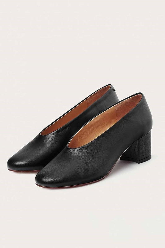 Sleek Toe Color Round Solid Elegant Black Chunky Heels [Pre Order]