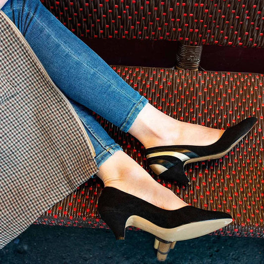 Polished Patchwork Pointed Toe Elegant Black Low Heels [Pre Order]