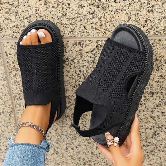 Hollow Out Knitted Cutout Solid Color Round Toe Casual Sandals