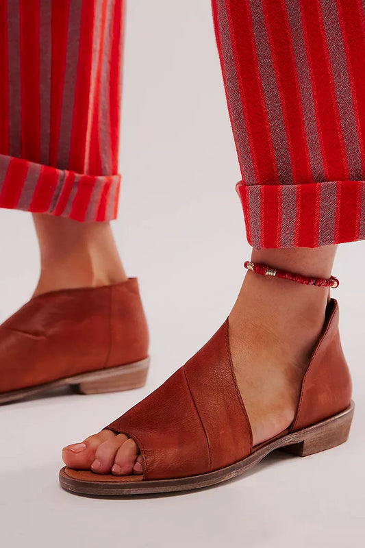 Asymmetric Cutout Plain Toe Ring Brown Sandals