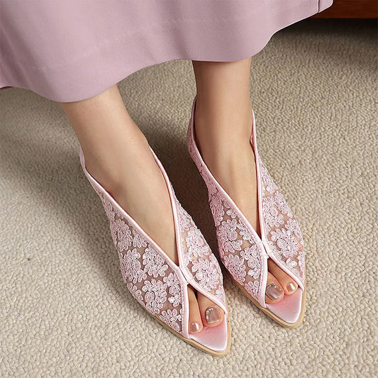 Floral Pattern Mesh Peep Toe Slingback Sandals Heels