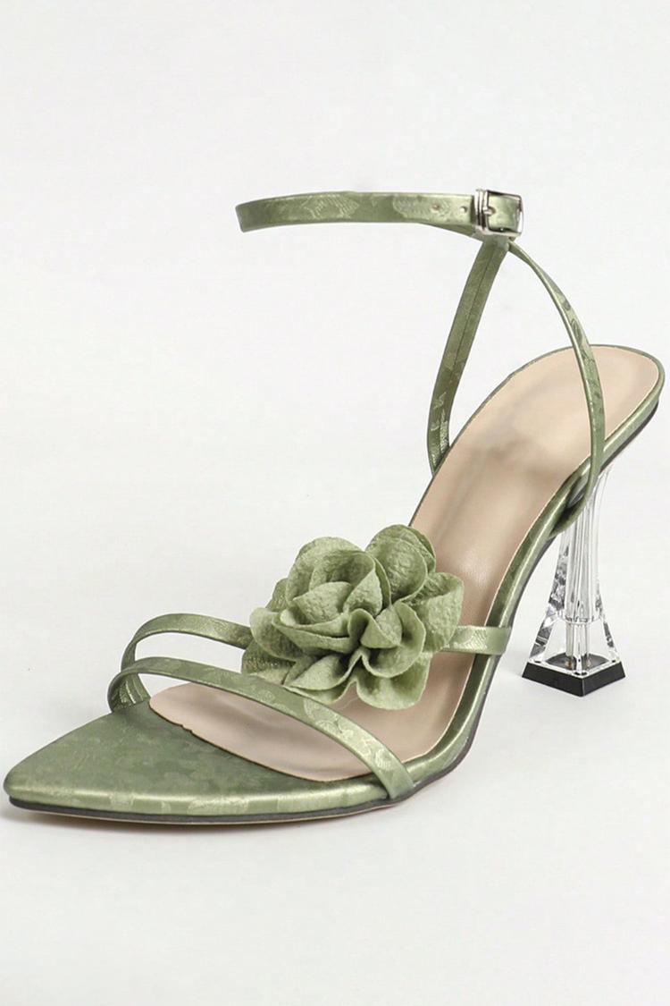 Ankle Strap Buckle 3D Flower Decor Satin Pointed Toe Stiletto Heels