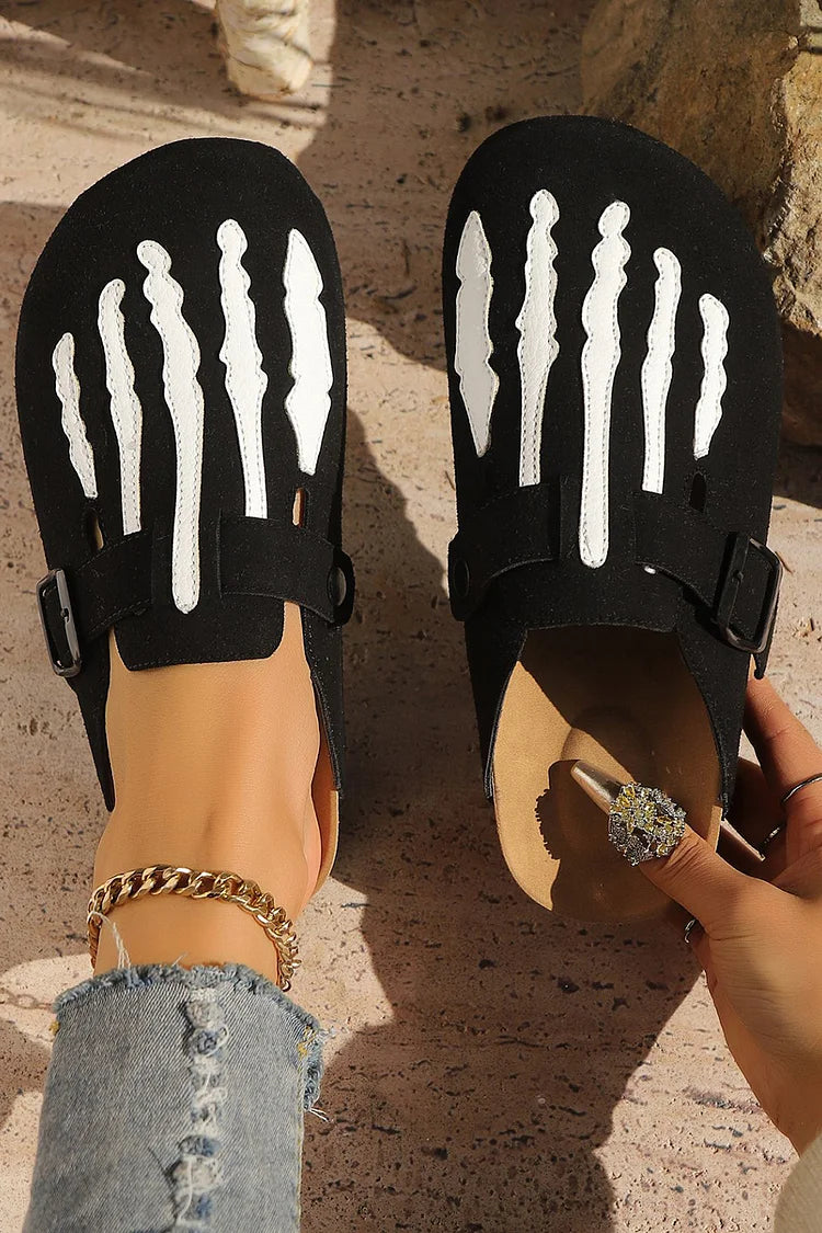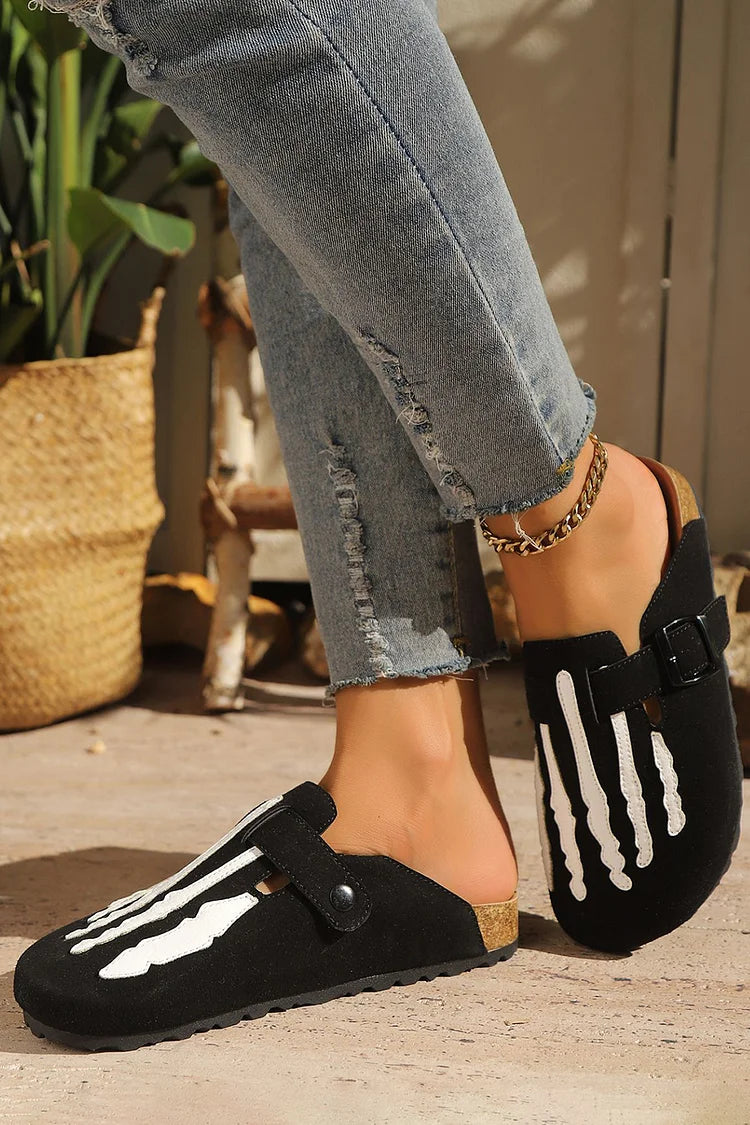 Colorblock Faux Suede Strap Buckle Round Toe Casual Mules