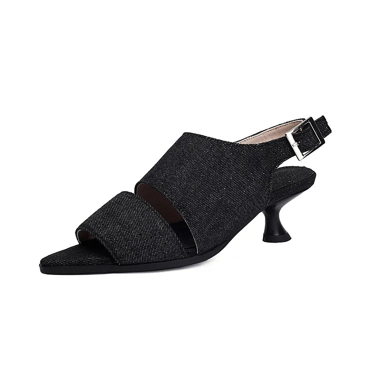 Cross Strap Buckle Pointed Toe Black Stiletto Heels