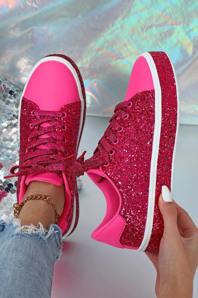 Patchwork Glittering Round Toe Lace Up Casual Sneakers