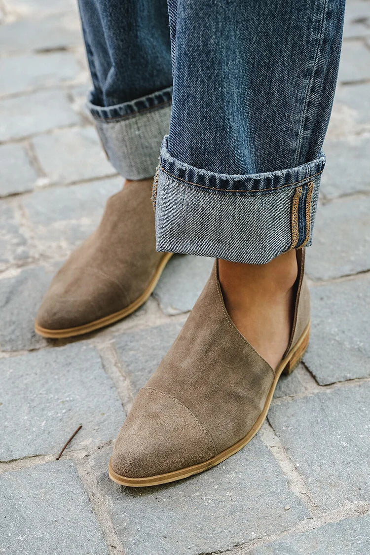 Solid Color Asymmetric Cutout Pointed Toe Brown Flats [Pre Order]