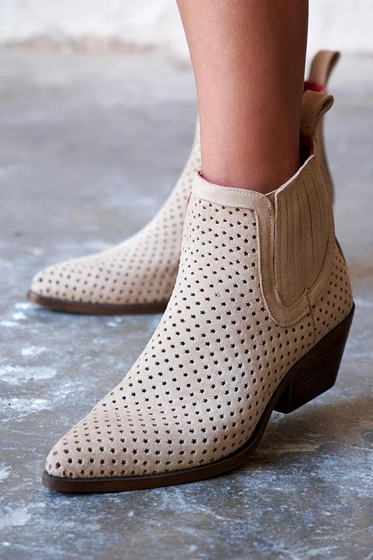 Pointed Toe Solid Color Hollow Out Beige Ankle Boots [Pre Order]