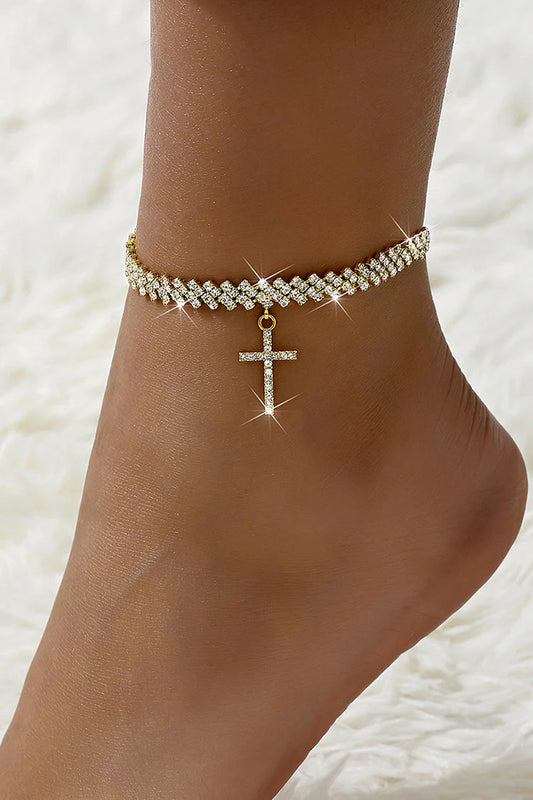 Rhinestone Decor Cross Pendant Alloy Fashionable Anklet