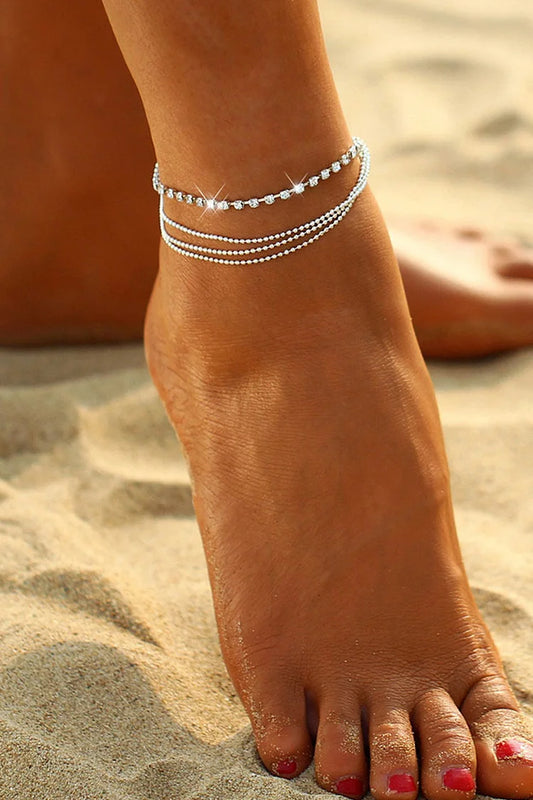 Rhinestone Decor Fashionable Alloy Multilayered Anklet