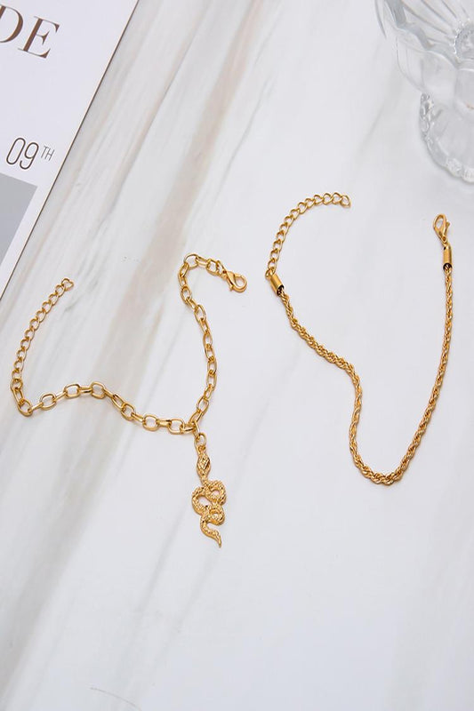Snake Pendant Twisted Alloy Layered Chain Anklet