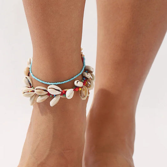Boho Beach Colourful Beads Shell Braided Alloy Chain Anklets