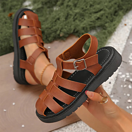 Woven Suede Buckled Closed Toe Flat Fisherman Sandals
