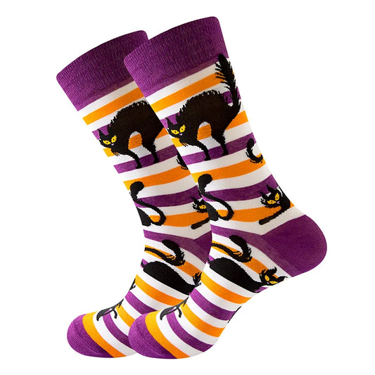Elegant Halloween Element Witch Haunted House Pumpkin Scarecrow Print Mid Calf Socks
