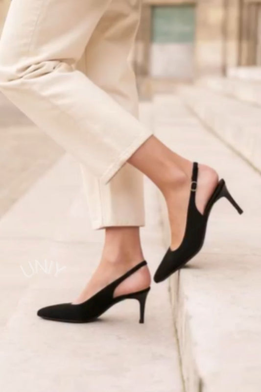 Minimalist Black Suede Pointed Toe Slingback Kitten Heels [Pre Order]