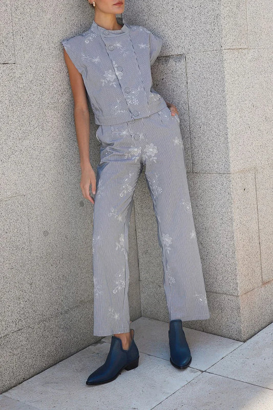 Striped Stitching Pointy Toe Flat Zipper Mid-Calf Boots