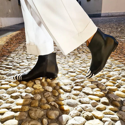 Stitching V Cut Black Toe Zipper Ankle Pointy Boots